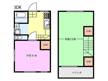 3DK1階:洋8, 2階:和12