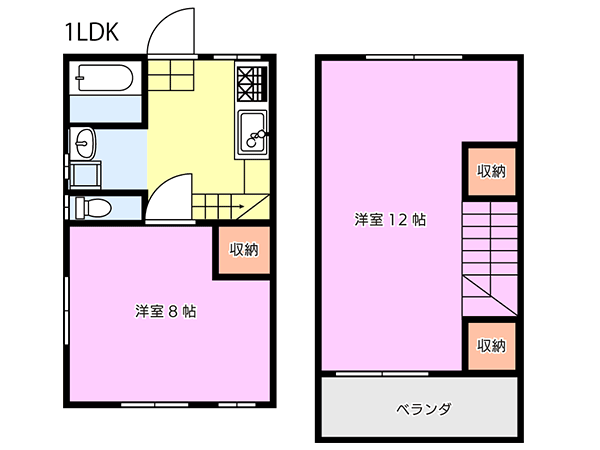 - 1LDK1階:洋8, 2階:洋12